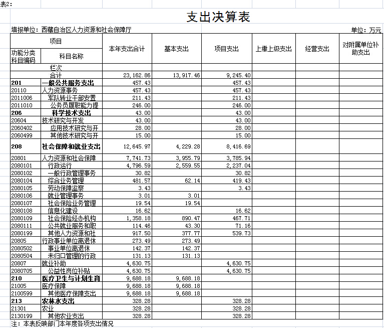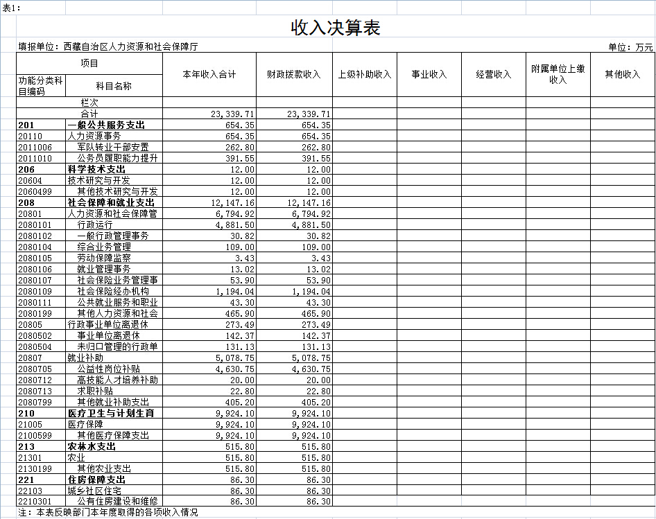 填报单位:自治区人力资源和社会保障厅 单位:万元