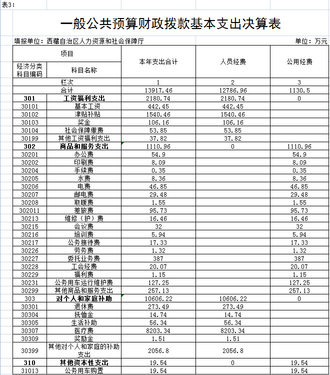 三、一般公共服务(类)人力资源事务(款):指自治区人力资源和社会保障厅履行一般公共服务职能的支出。